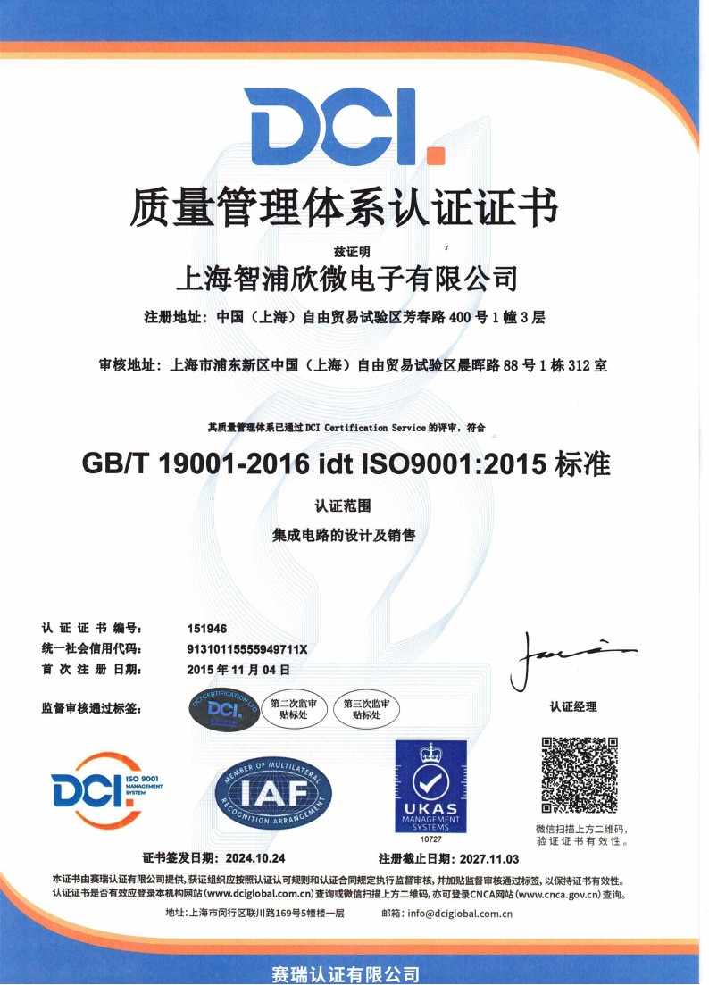 上海市智浦欣微电子有限公司于2012年获得国家集成电路设计企业认定: