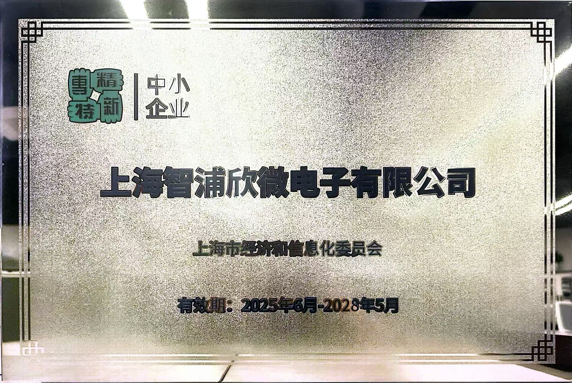 2025年获得上海有关部门颁发的专精特新中小企业称号: